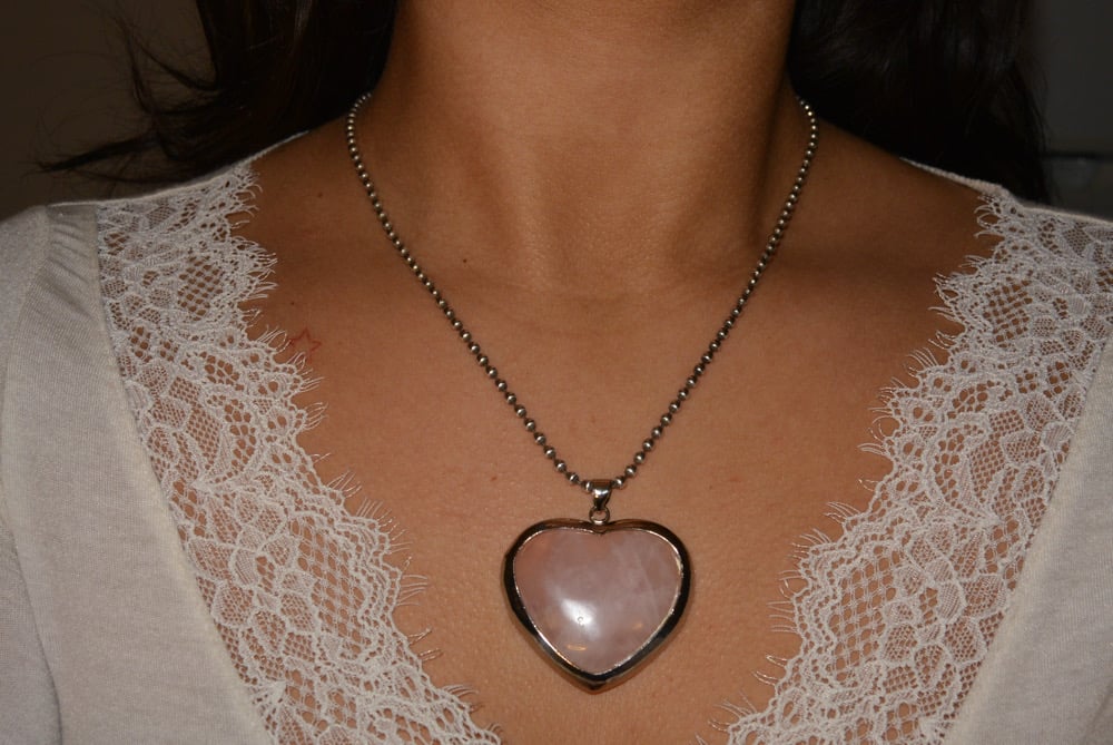 925 sterling silver rose quartz pendant on sterling silver ball chain