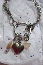 silver tone bracelet with lifesaver clasp with mother of pearl and silver tone charms