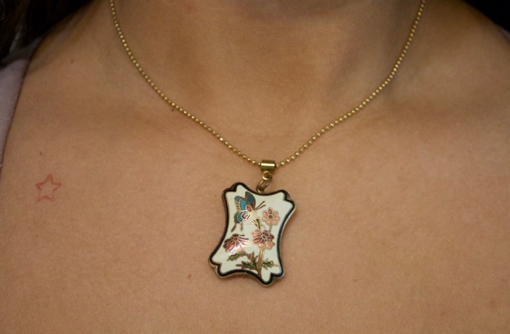 vintage butterfly cloisonné pendant on gold tone chain